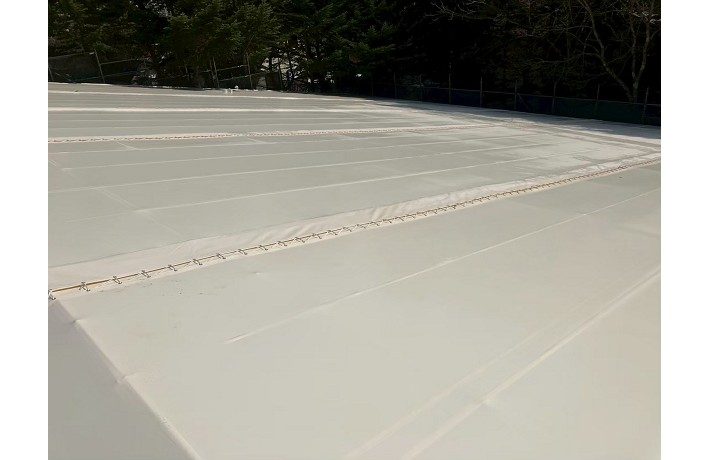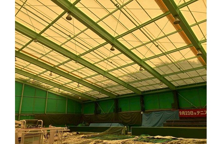奈良県にて間口7.1m 奥行25m上屋テントの張替工事を行いました。・・・