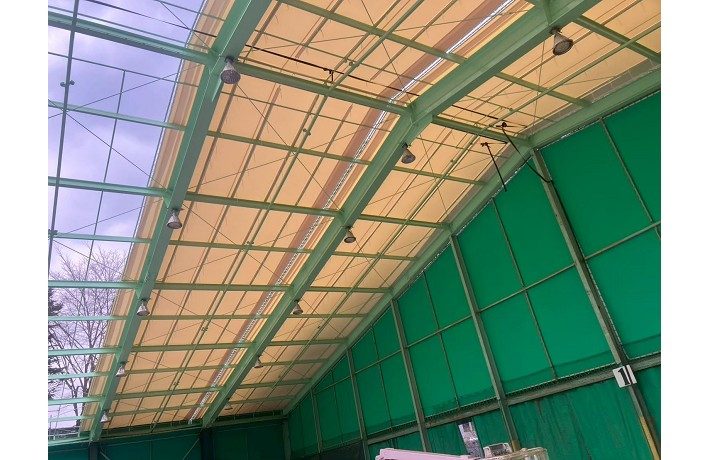 愛知県にて間口12.4m 奥行56m 軒高5.7m上屋テント(開閉式テ・・・