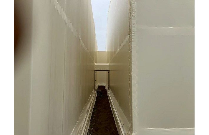 静岡県にて間口7.6m 奥行33.8m 軒高4.3m荷捌きテントの張替・・・