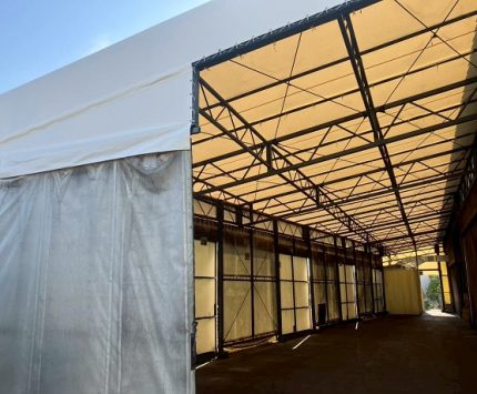 静岡県にて間口7.6m 奥行33.8m 軒高4.3m荷捌きテントの張替・・・