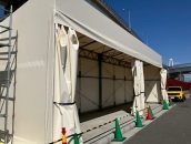 愛知県にて間口12.4m 奥行56m 軒高5.7m上屋テント(開閉式テ・・・
