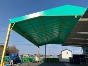 荷捌き場の上屋テント屋根のご案内。工場や倉庫などの荷捌き場に雨天対応のテント屋根を設置致します。柱数を極力減らし、強い強度・耐久性を実現致します。雨天時の荷物の積み下ろし作業や、荷捌き作業なども安心してご利用頂けます。小型サイズから大型サイズでも全て1つづつプロ職人が製作から施工まで対応させて頂きます。